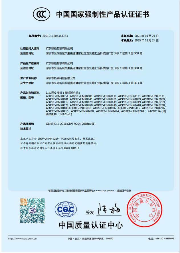 交換機CCC認證證書