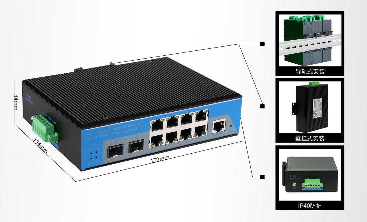我們先來看看這款T628GS-M-SFP工業交換機的外觀:黑色金屬外殼(ké),堅(jiān)固耐用,IP40防護等級,無論是在潮濕的環境中,還是在灰塵飛揚的工廠(chǎng)裏,都能保證設備(bèi)的正常運行。尺寸僅爲179×134×34mm,小巧便攜,無論是安裝還是移動,都極爲方便。重量隻有0.82Kg輕便易攜,並(bìng)且支持導(dǎo)軌式安裝,讓你的工作效率翻倍。