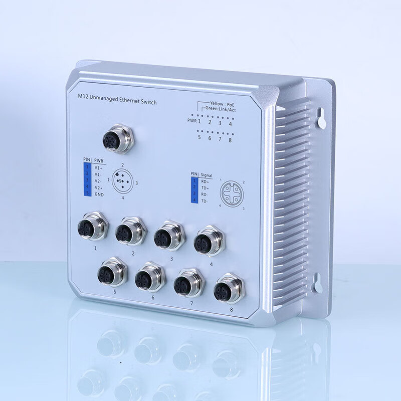 該系列交換機提供 5 個或 8 個 M12 以太網端口選擇,滿足中小型工業場(chǎng)景的設備(bèi)接入需求,無論是傳感器、攝像頭,還是 PLC 控制器,均可靈活連接。在兼容性上,全面支持 IEEE802.3/IEEE802.3u/IEEE802.3ab/IEEE802.3x 協議,且具備(bèi) 10/100/1000M 速率自适應、全 / 半雙工自适應、MDI/MDI-X 自适應功能,無需人工手動配置,設備(bèi)接入後即可自動匹配最優傳輸模式,降低技術人員操作門檻,同時爲工業以太網提供經濟高效的解決方案,兼顧性能與成本。