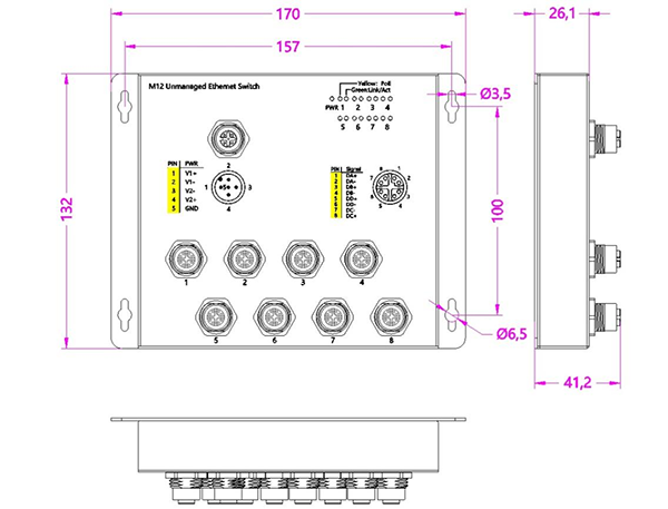 非網管工業級(jí)(鋼(gāng)合金)百兆8電(diàn)M12直插式加固交換機,A型4芯網口,壁挂式-DC12~52V供電(diàn)-寬溫,可帶(dài)POE,默認不含AC電(diàn)源适配器。