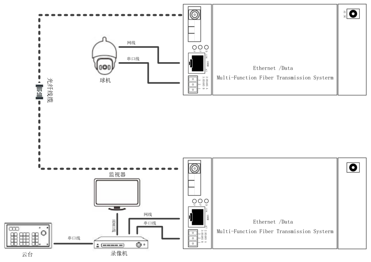 設備:1路百兆以太網+1路雙向RS485數據(jù)光端機(jī)
