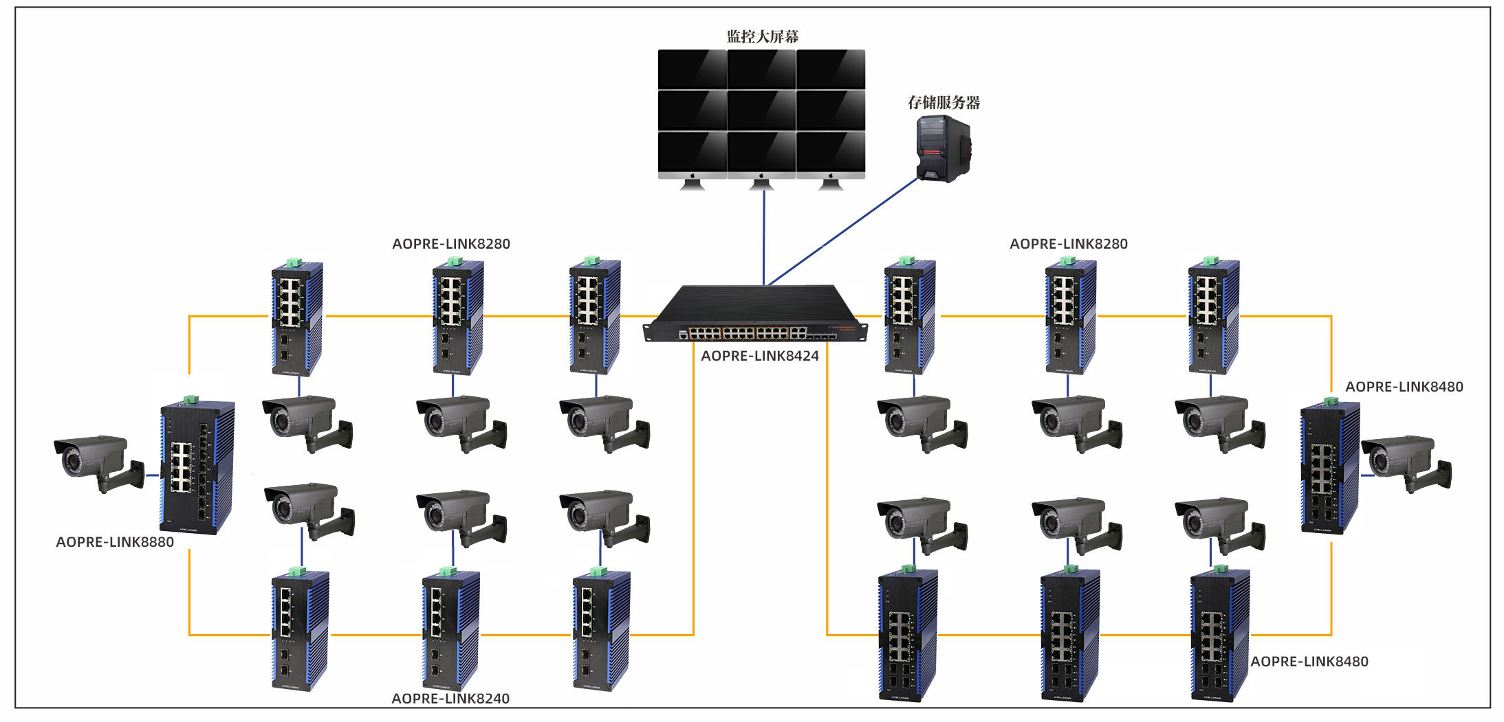 歐柏互聯在道路交通檢測(cè)系統解決方案採(cǎi)用AOPRE-LINK8424、AOPRE-LINK8880、AOPRE-LINK8280、AOPRE-LINK8480系統抓拍的點形成環網,直接在中心房採(cǎi)用千兆工業交換機進行數據彙聚。保障各個監控點(diǎn)監控到位,與正常通信提高網絡數據傳(chuán)輸的高效性。