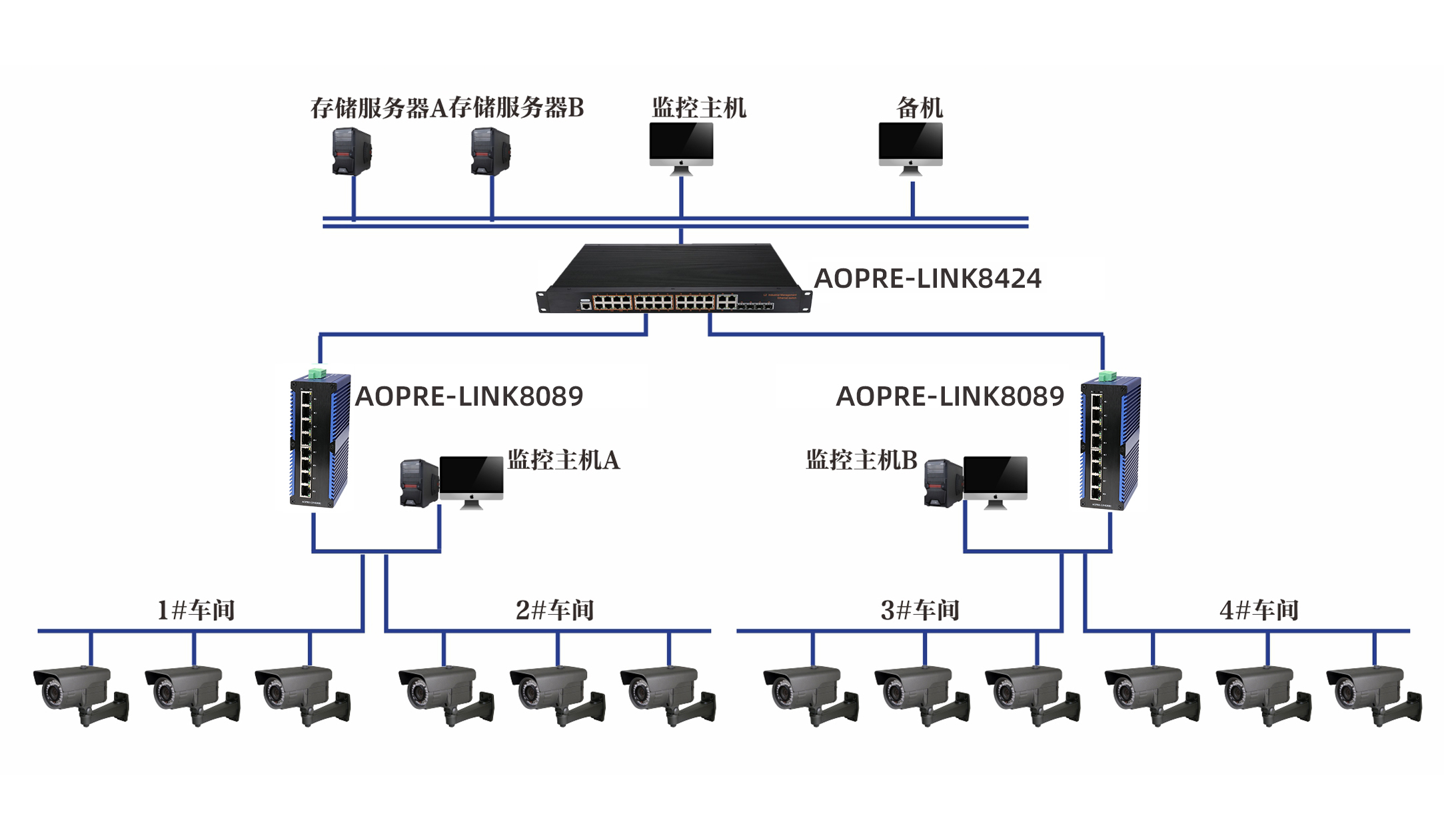 歐柏互聯在工業自動化監控解決方案中採(cǎi)用瞭(le)AOPRE-LINK8089、AOPRE-LINK8424組網,直接與自動設備相連,将傳感器採(cǎi)集的信息通過AOPRE-LINK8424反饋給控制站,同時将控制站的控制信息傳遞給PLC等多個自動化設備,實現自動化設備與傳感設備的統一管理和自動化。